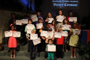 Monticello Christian Academy, a daycare through 12th grade private school located at 910 Old Warren Road in Monticello, AR, recently hosted its 10th annual Victory Ceremony. This is a time to celebrate the accomplishments that the students made through the year as well as honor the graduating seniors. The photo depicts some of MCA’s students with their awards.