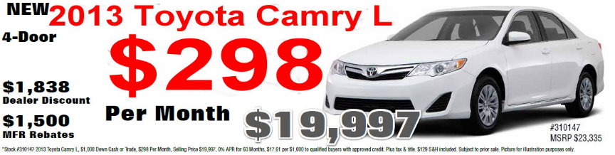 New 2013 Toyota Camry L, 0% Available – $19,997 *