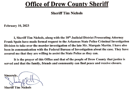 New Sheriff & Prosecutor Request ASP & FBI Involvement in Marquis Martin Case, 3rd Anniversary of His Disappearance