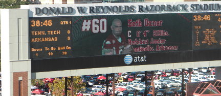 September 10th, 2010 byFormer Monticello Billie, Seth Oxner, as seen on the Razorback Stadium Jumbotron, Saturday.