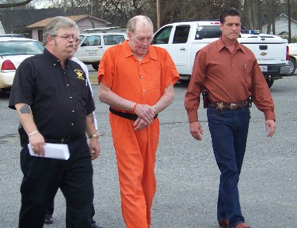 Riley, being escorted back to the County Detention Facility, by Drew County Sheriff Mark Gober, and Det. Rick Rausch, of the Sheriff’s Dept.
