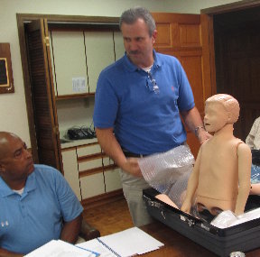 The Monticello school board accepted a CPR training unit donated by Ryburn Motor Company. The unit will help to train coaches and staff of the schools to further help to keep kids safe. The unit, which is junior life sized, tells with signals when the trainee applies the right pressure in the proper location and when the trainee breaths correctly into the unit’s mouth.