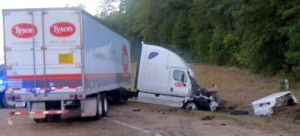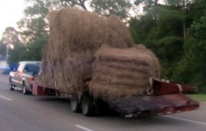 Around 5:30, Saturday morning, the driver of the trailer of hay bales (shown below) seems to have pulled out in front of the Tyson 18-wheeler. Both vehicles were traveling north on HWY 25 South.