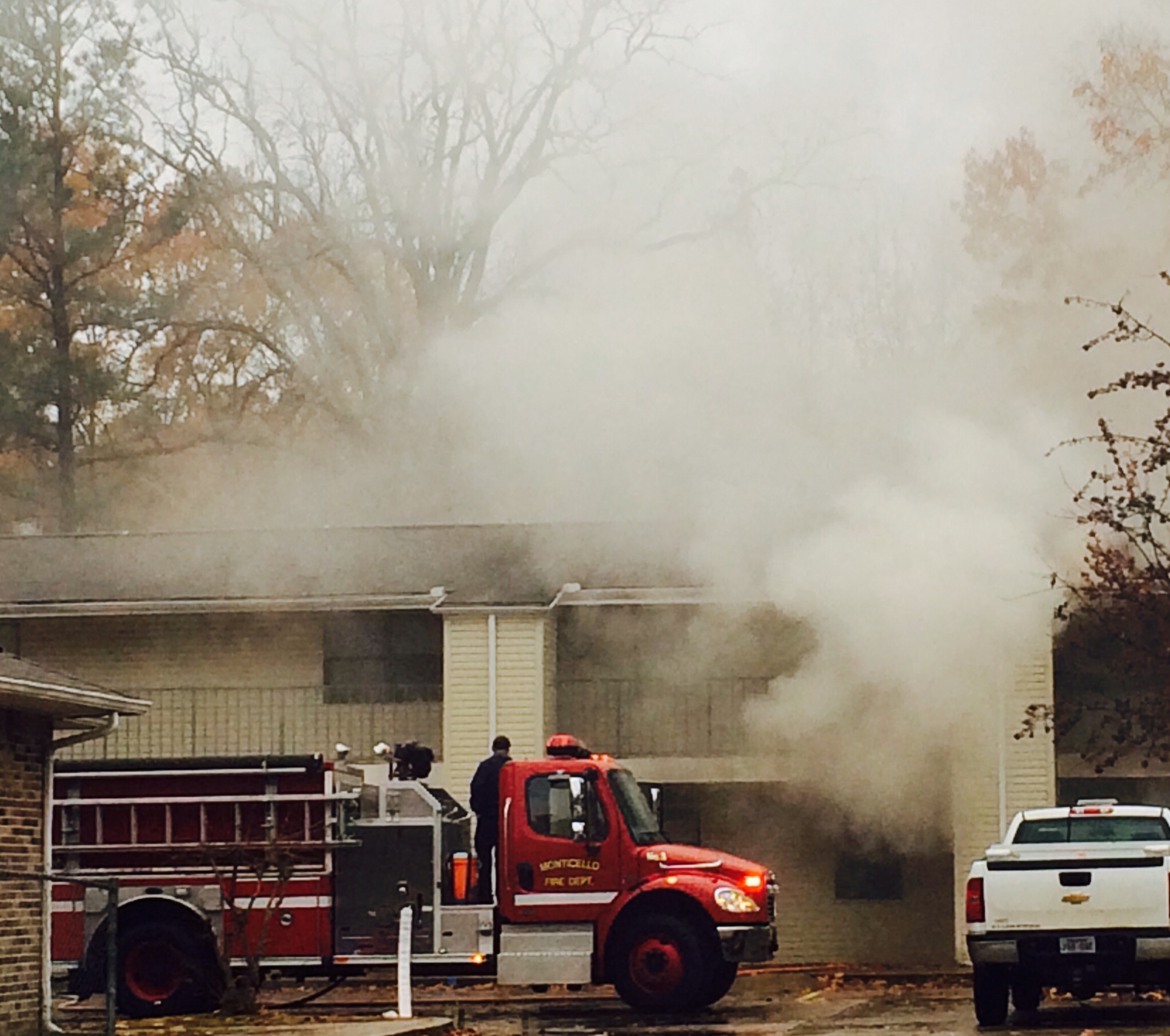 The Monticello Fire Department is currently responding to an apartment fire at Turtle Creek Apartments on Slemmons Street.