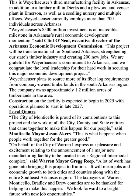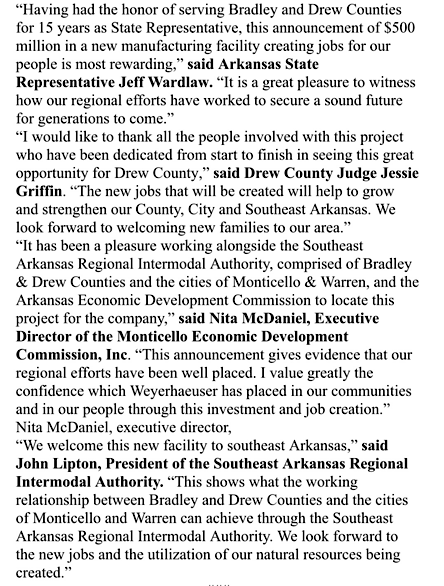 Weyerhaeuser Bringing 200 Jobs to Drew County